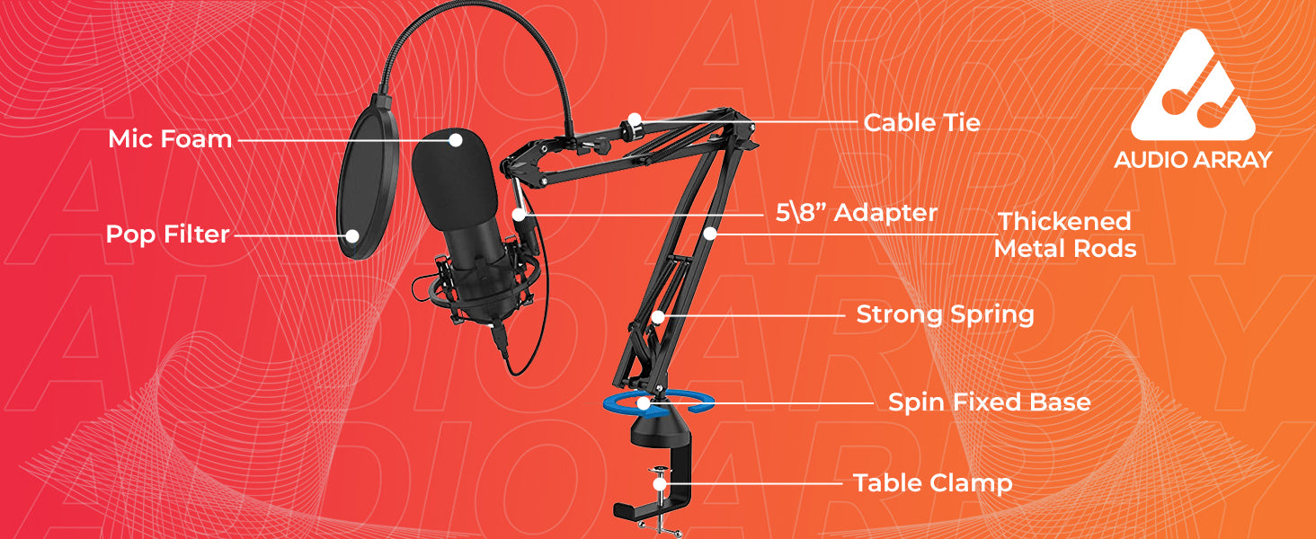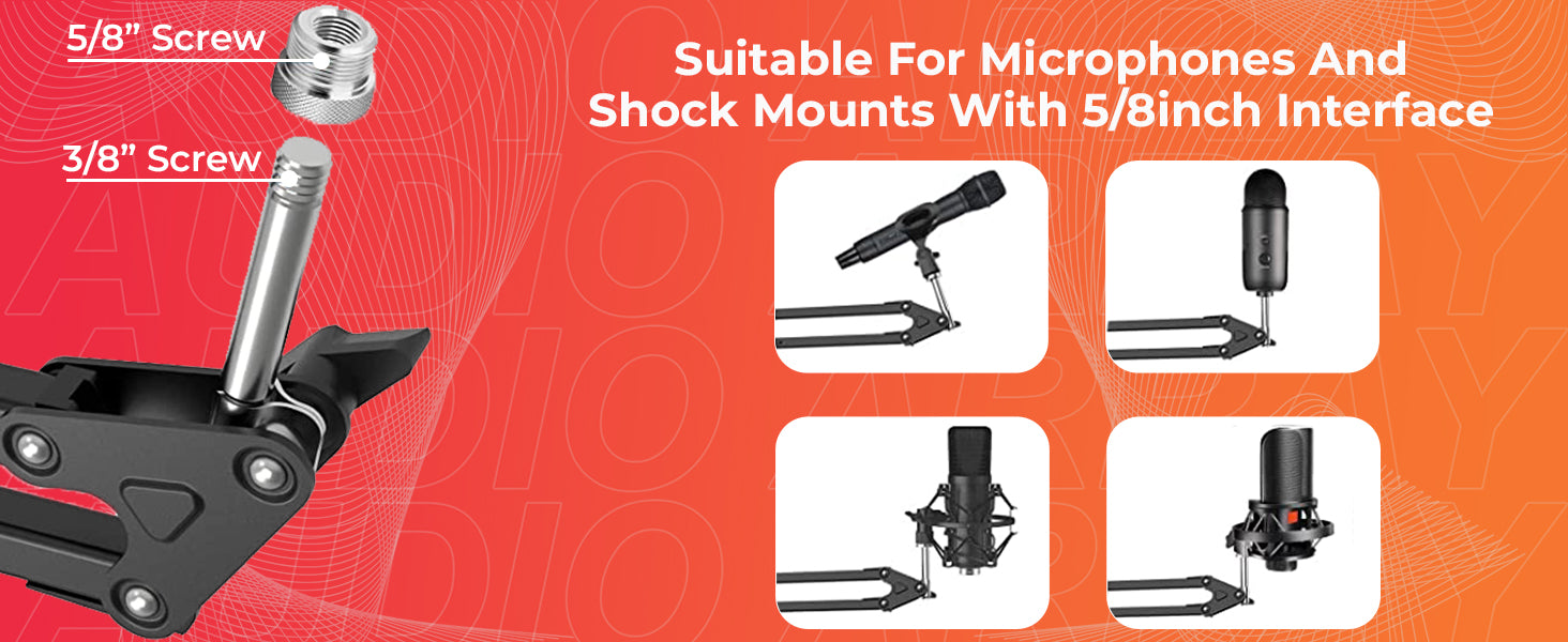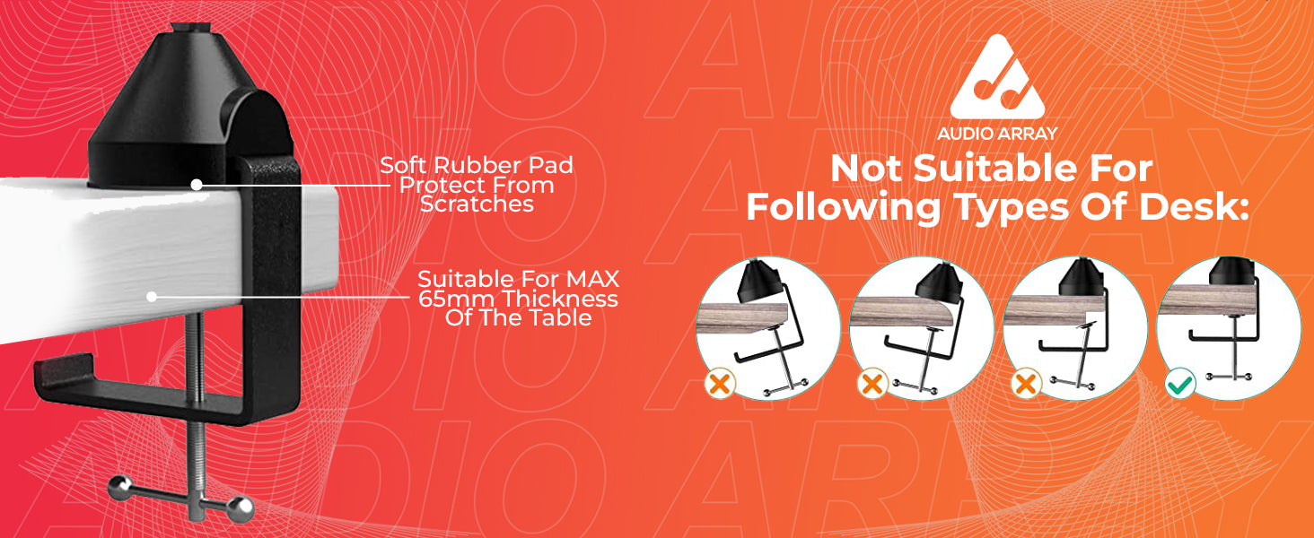 - Upgraded Desk Clamp: The robust desk clamp offers 4x more contact area (38cm²), easily attaching to desks up to 6cm thick. Comes with a standard 3/8" to 5/8" adapter to fit various microphones and shock mounts. (Microphone and shock mount not included.)