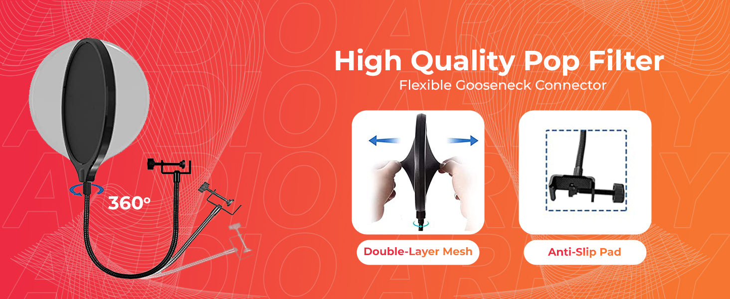 - Double Layer Pop Filter & Foam Cover: Effectively reduces sibilance, plosives, and unwanted noise from wind or breathing. Includes an adjustable pop filter with a flexible gooseneck and a mic foam cover for superior sound quality.
