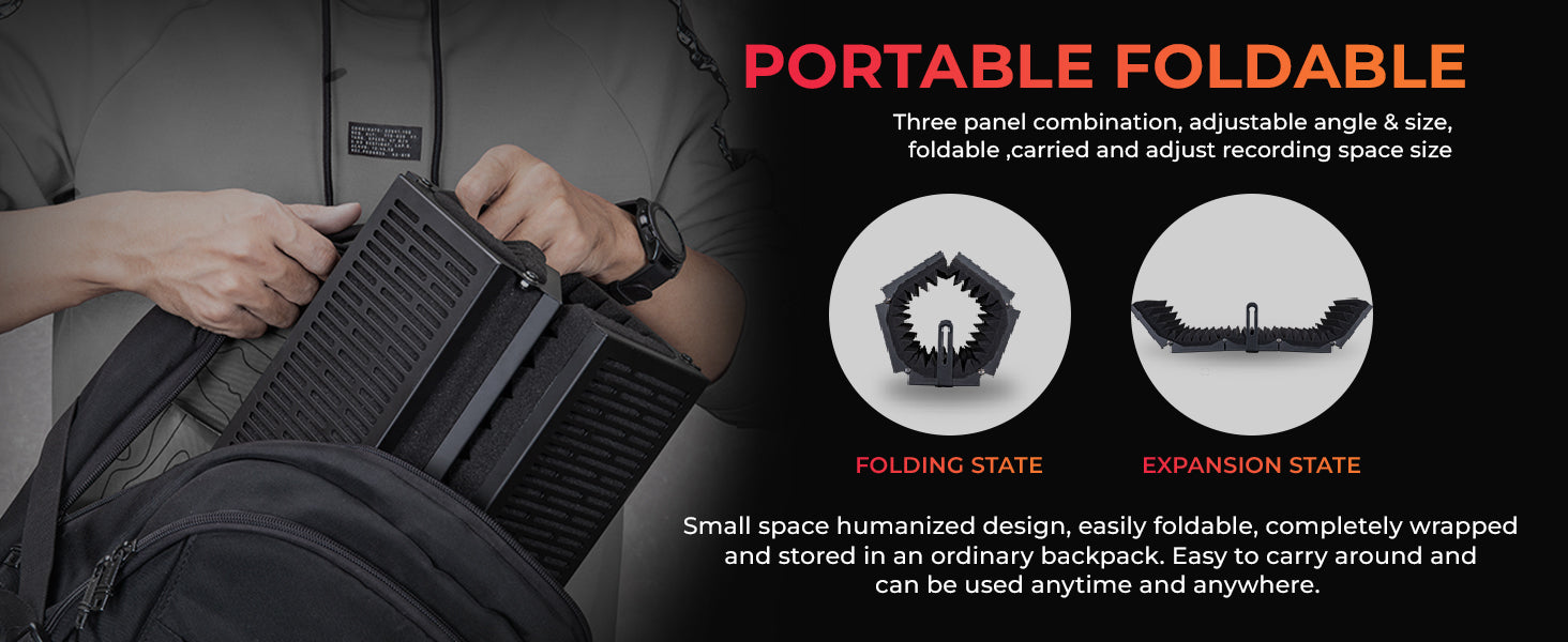 - π€ [FLEXIBILITY & CONVENIENCE]: β Five foldable end panels allowing angle adjustments for optimal isolation. The compact design, lightweight construction, and foldability allow you to carry it easily anywhere. Recommended for dubbing, recording, singing, podcasting, acoustic recording, and sound booth.