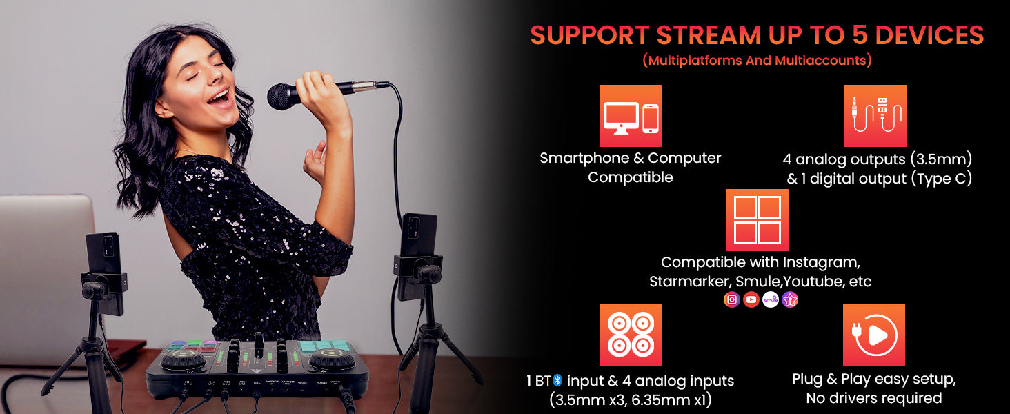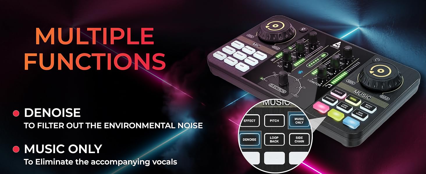 AI-03 Audio Interface Sound Card with Bluetooth | For Streaming, Singing & Gaming