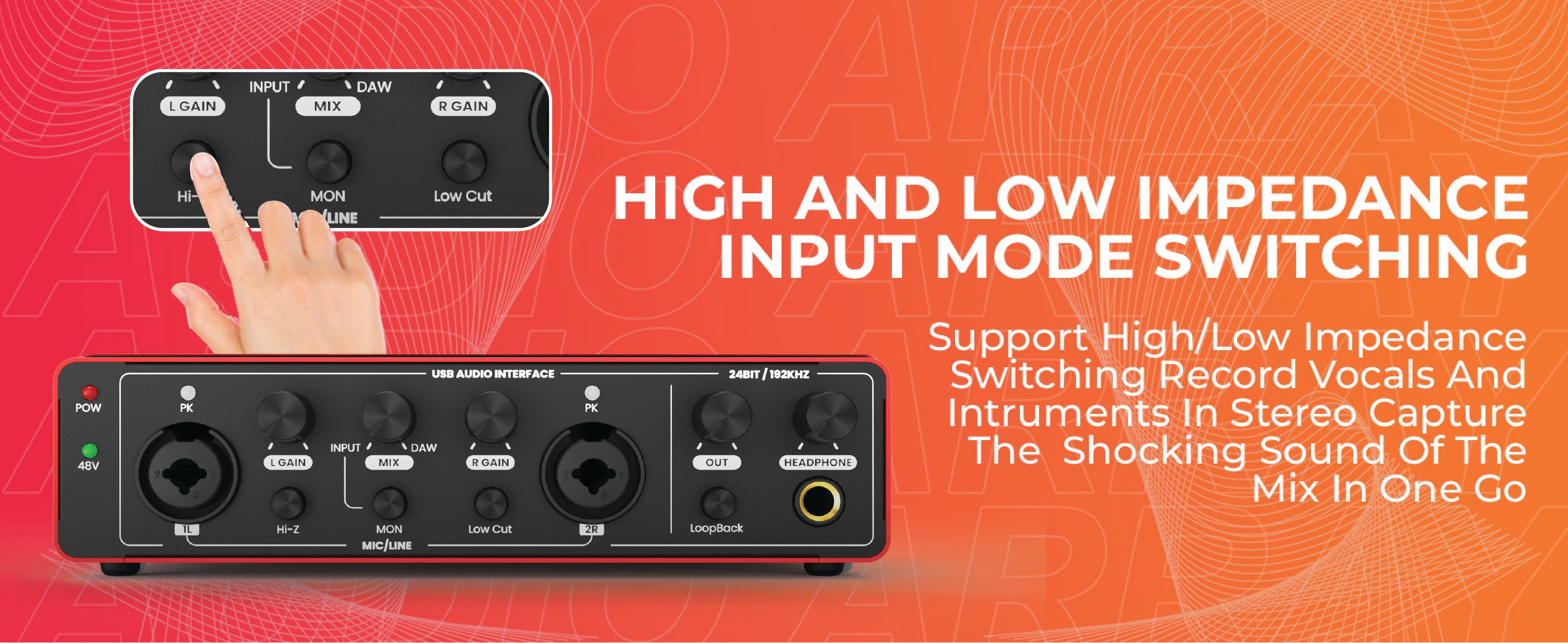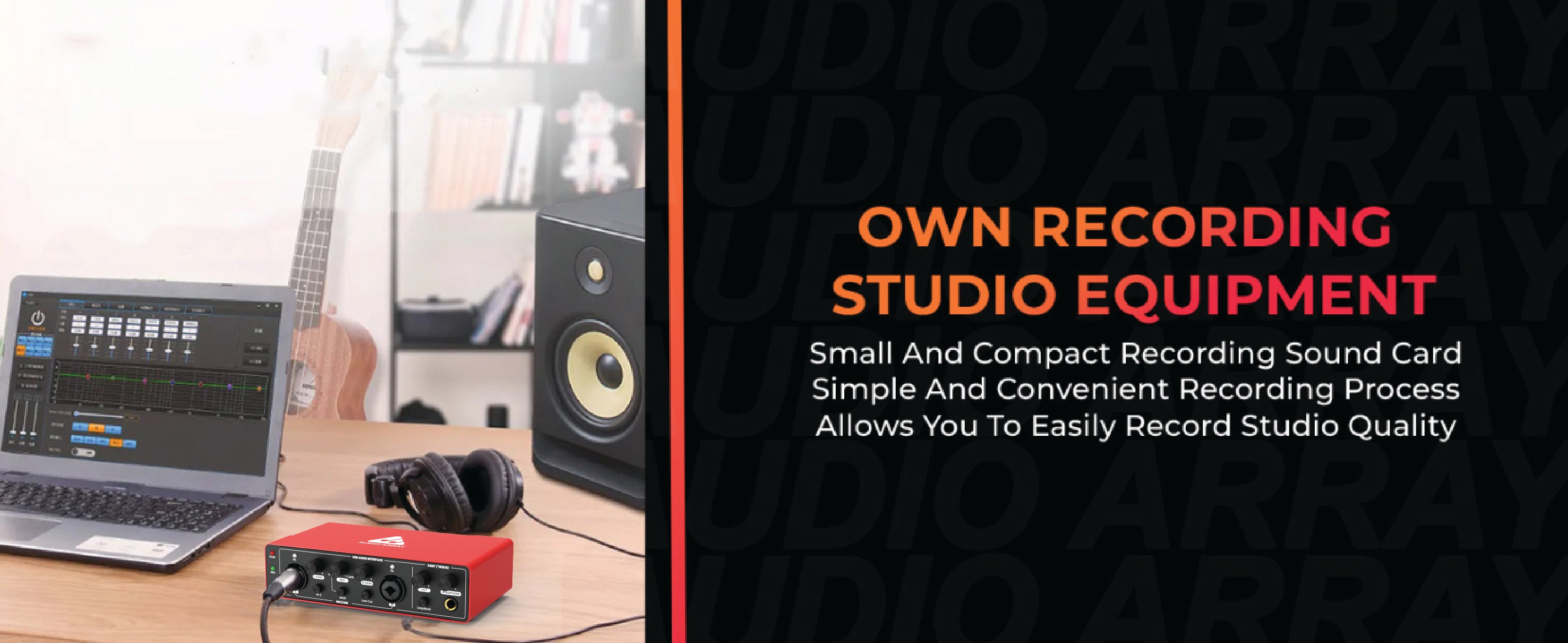 Achieve studio-quality sound with the Audio Array AI-04 24-bit/192kHz audio interface, offering 2-in/2-out low latency recording. Designed for mic and instrument inputs, it ensures crystal-clear playback.