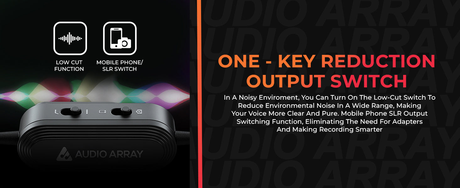 - π€ [ONE KEY NOISE REDUCTION]: The microphone has one key noise reduction to reduce the environmental noise by turning on the low cut switch.