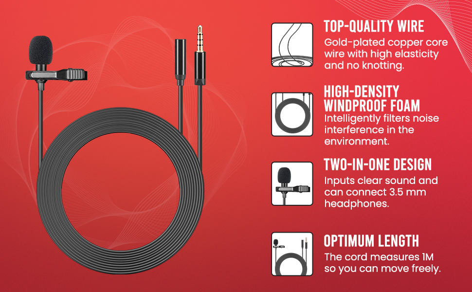 - 🎤 [PROFESSIONAL SOUND QUALITY] – The condenser lavalier microphone comes with an omnidirectional pick-up pattern. The frequency range is 50Hz-18kHz