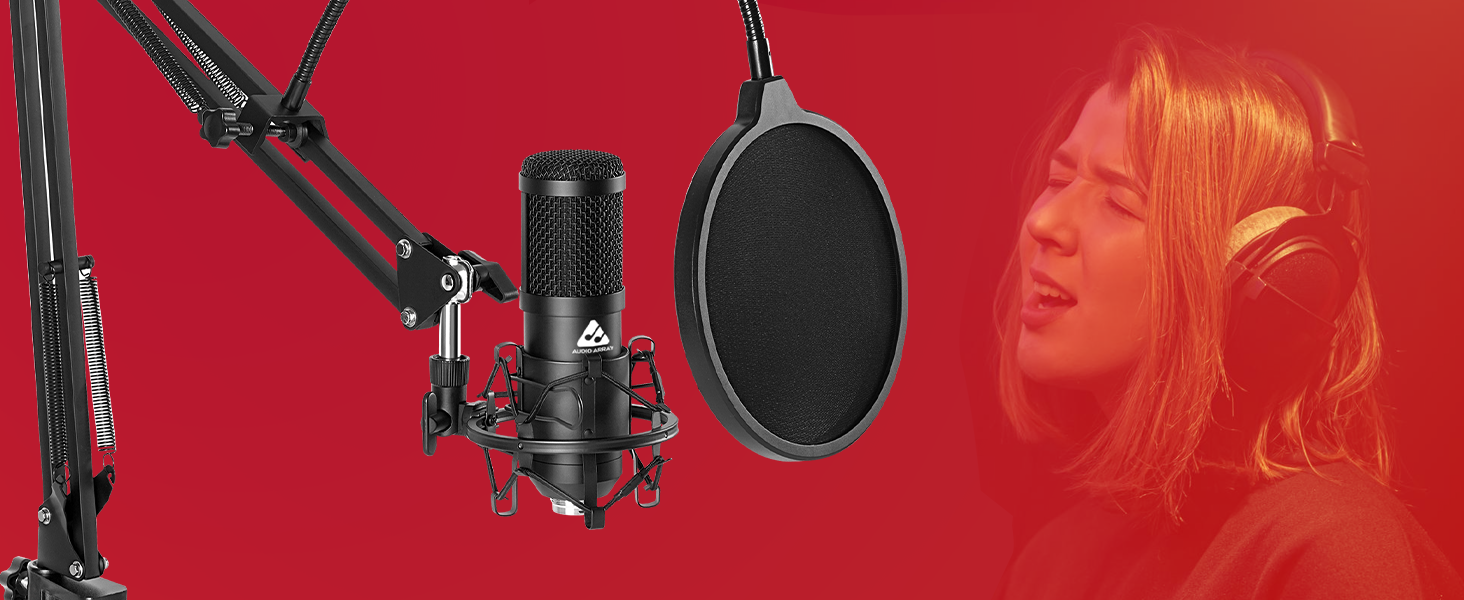 - Complete Mic Kit: Comes with a condenser mic, boom arm, mic cover, pop filter, 2m XLR to 3.5mm cable, and cable ties—everything needed for a professional setup.