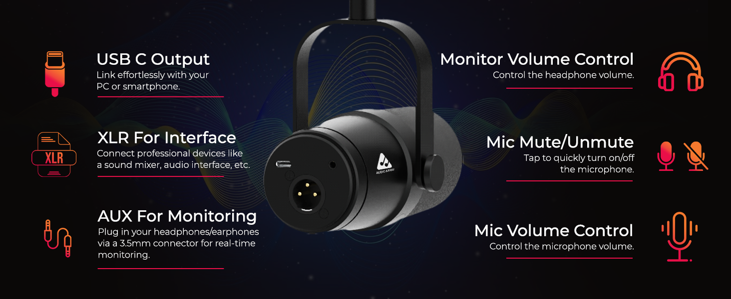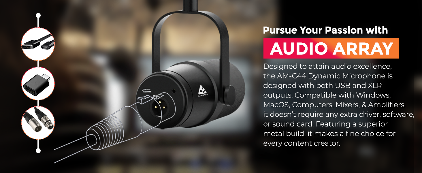 Audio Array AM-C44 XLR/USB Professional Dynamic Podcast Microphone