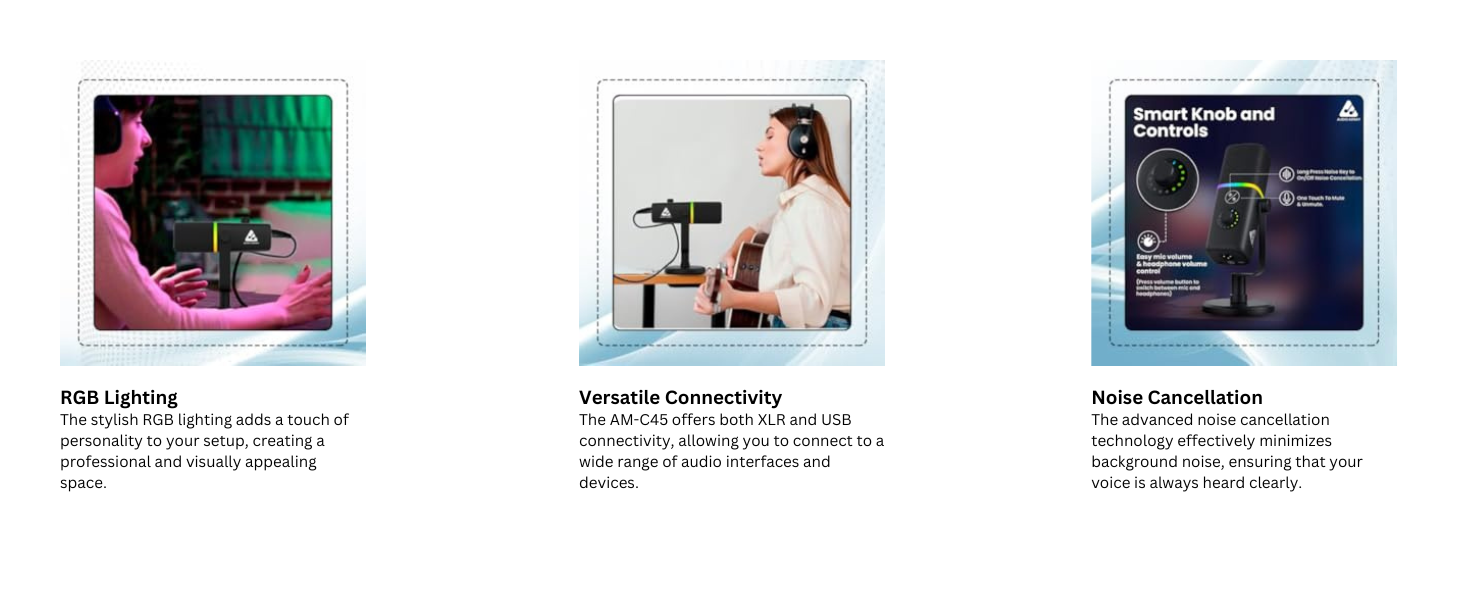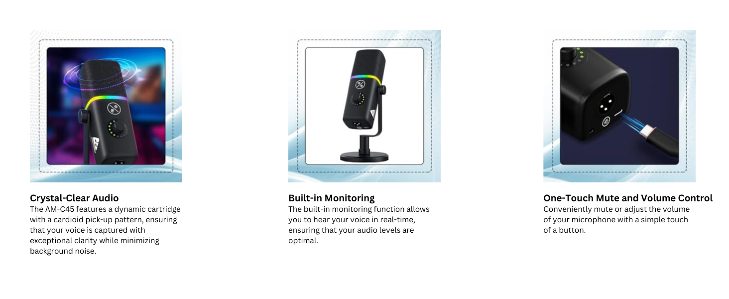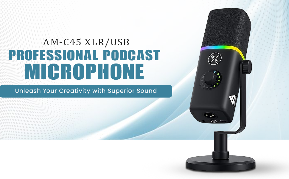 Audio Array AM-C45 XLR/USB Professional RGB Dynamic Podcast Microphone | Streaming, Podcasting, Singing