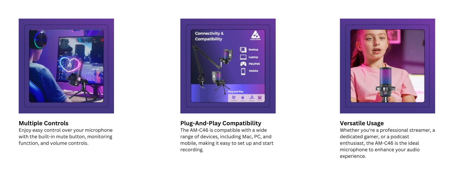 - All-in-One Features: Equipped with one-touch Mute/Unmute, AI noise cancellation with long-press activation, a volume knob, RGB touch control, and a 3.5mm headphone jack for real-time monitoring, all in a compact design. No external power needed—ideal for any content creator or professional.