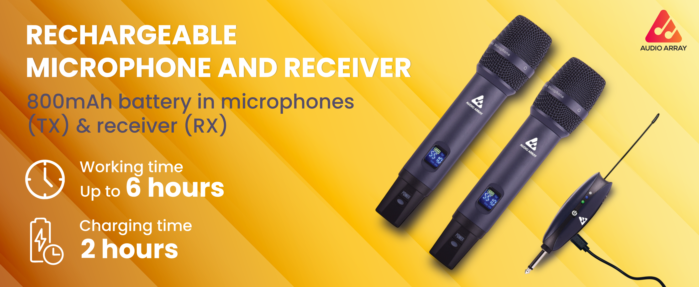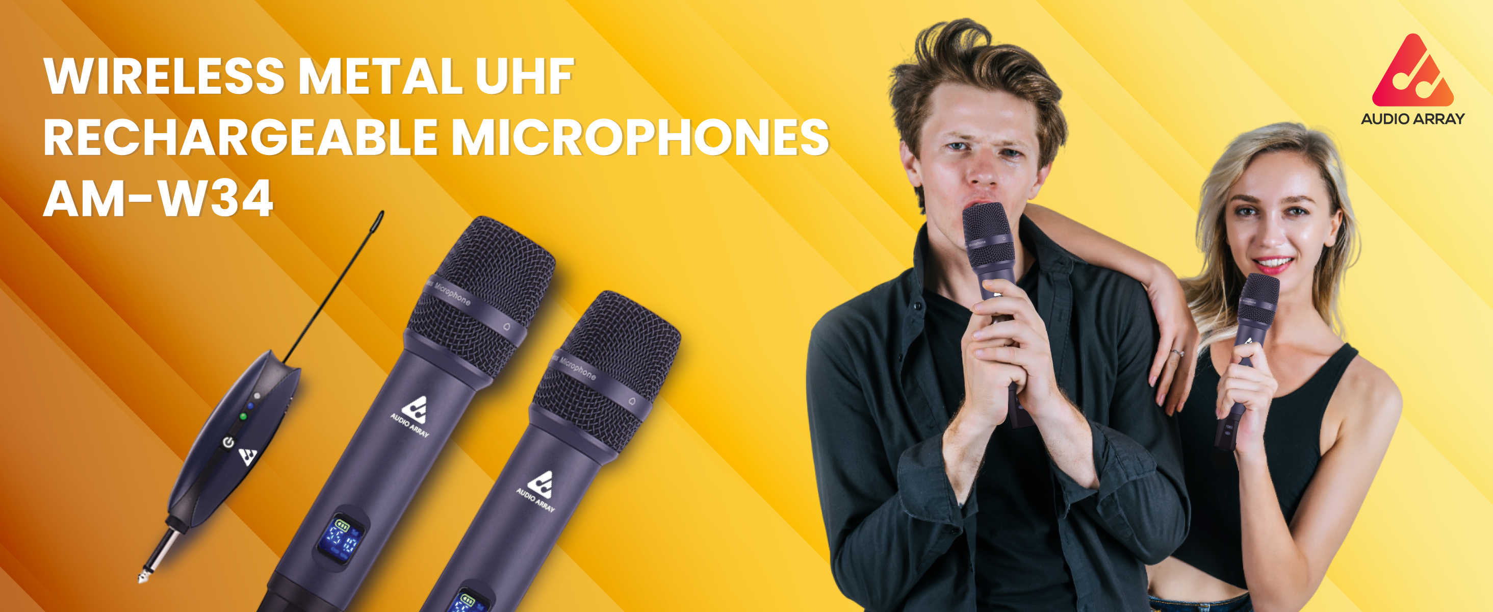 Audio Array AM-W34 UHF Dual Wireless Premium Metal Microphones | 6-8 Hours Receiver Battery Backup
