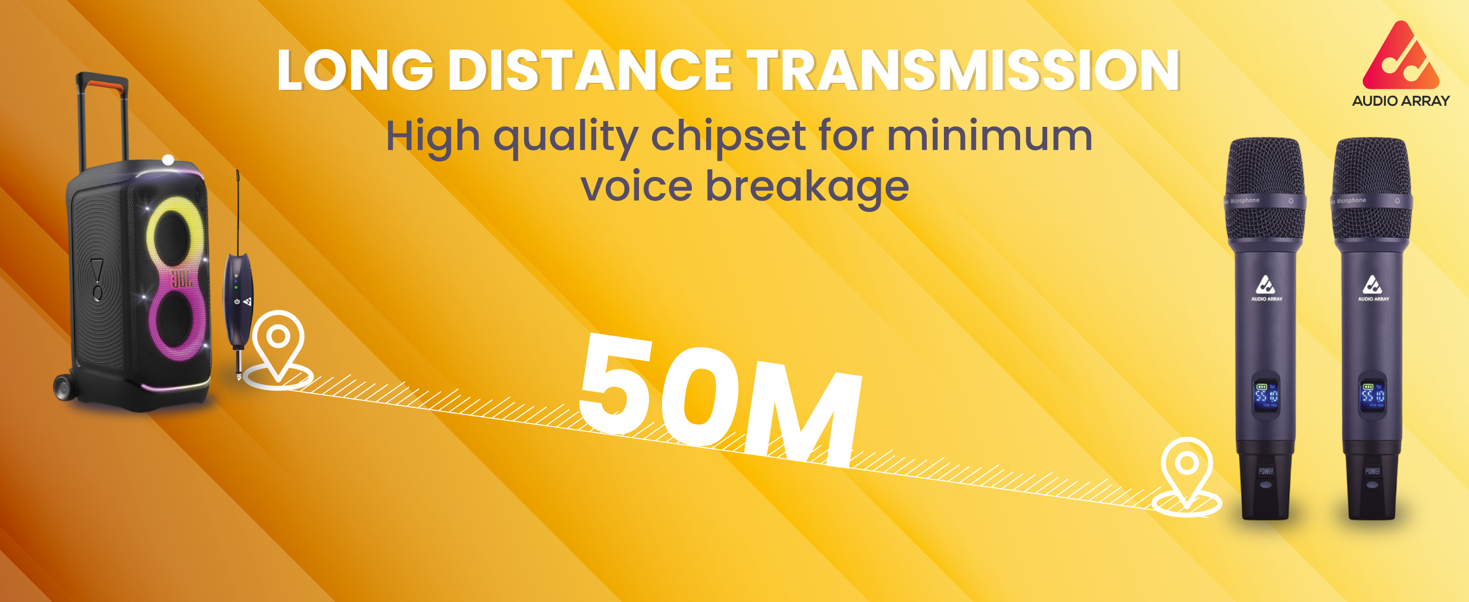 EASY SETUP & WIDE RANGE : This dual-channel dynamic microphone offers a reliable 30-50 meter range, perfect for indoor and outdoor events, from karaoke nights and weddings to conferences and ceremonies. Move freely and enjoy hassle-free setup for seamless performances.
